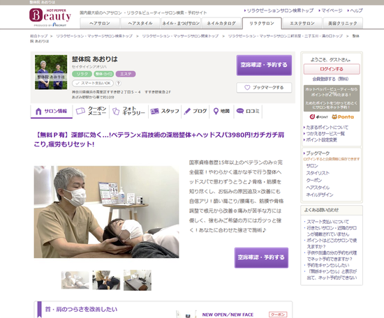 この度整体院あおりはがホットペッパービューティーに掲載されました。